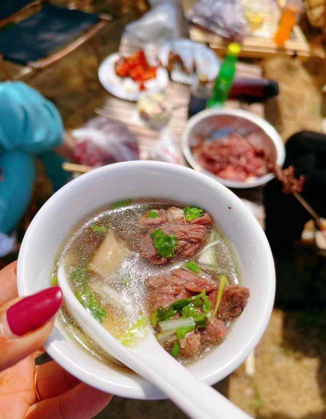 因为我们开的车大 容量十足 所以 我们有自己带帐篷来