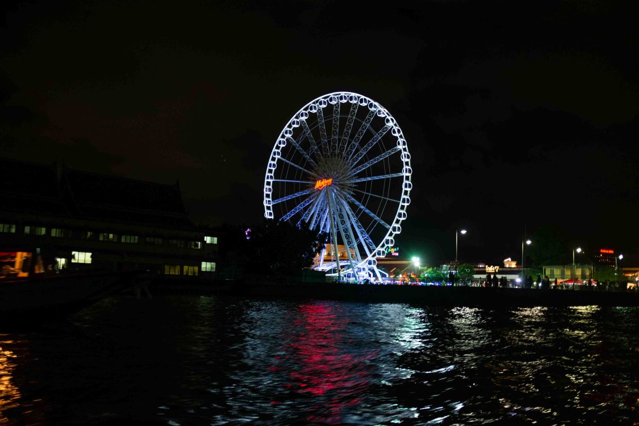 享用完美食后,继续漫步于夜市中。不一会儿,便来到了这个被誉为“曼谷之眼”的大型摩天轮前。或许是因为绮丽绚烂的灯光,让本就浪漫的摩天轮在夜色的笼罩下显得更为朦胧梦幻。几何时,曾听人说过“仰望摩天轮的时候,也就相当于在仰望幸福”。真正地坐上象征着幸福的摩天轮,跟随它慢慢升高。在将灯红酒绿的夜景尽收眼底的那一刻,突然顿悟,其实幸福在眼前,也在当下。