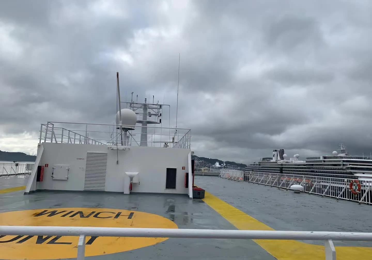 我们的海船是八点半的,凭某宝商家的邮件打印机(二维码)到港口换票,我们乘坐的海船与火车是一家公司的,所以免去了皮克顿提行李上下的麻烦。