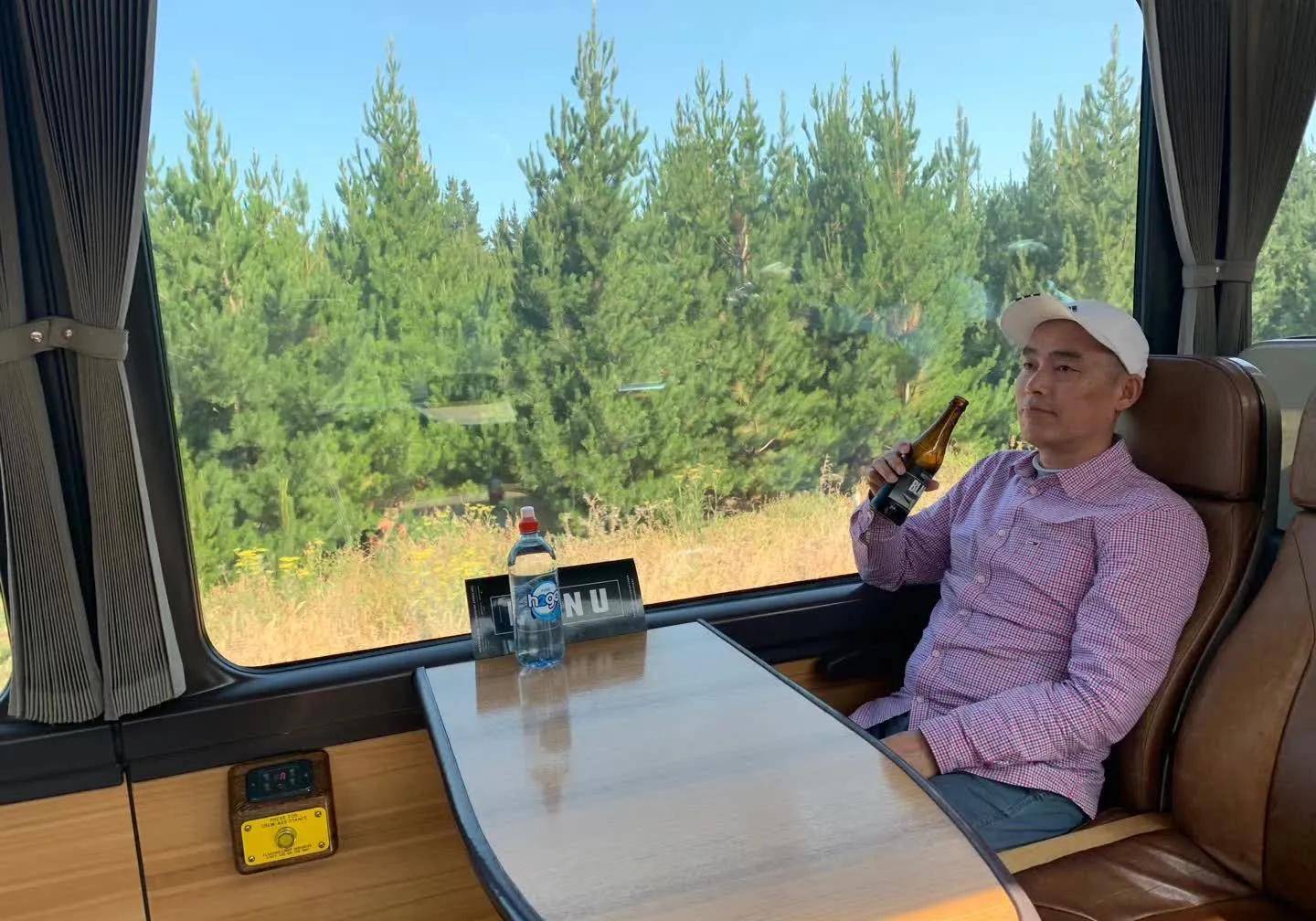 如果没记错的话,火车是一节餐车,一节行李车,四节客车,外加一节观光车。在餐车喝了杯啤酒、咖啡,终生难忘。