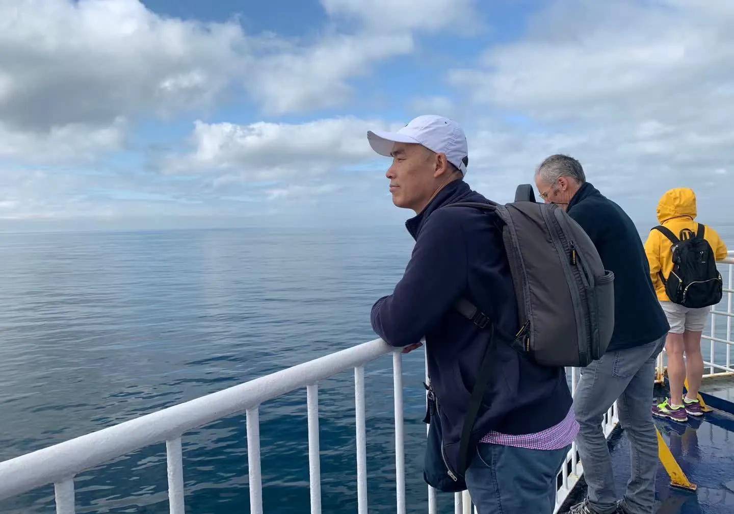惠灵顿到皮克顿的海船很大,有十层楼房那么高,一层到三层主要是汽车,四层以上是客舱,客舱也分一等座和二等座,没有座位,随意坐。