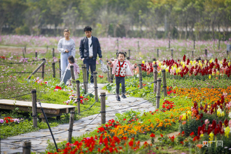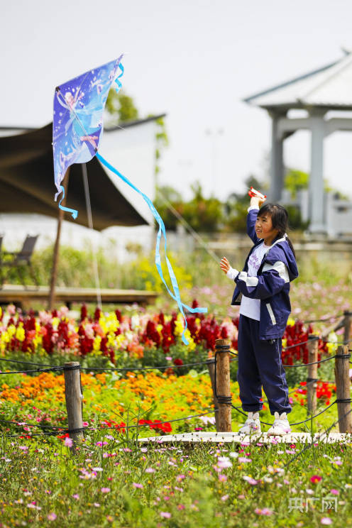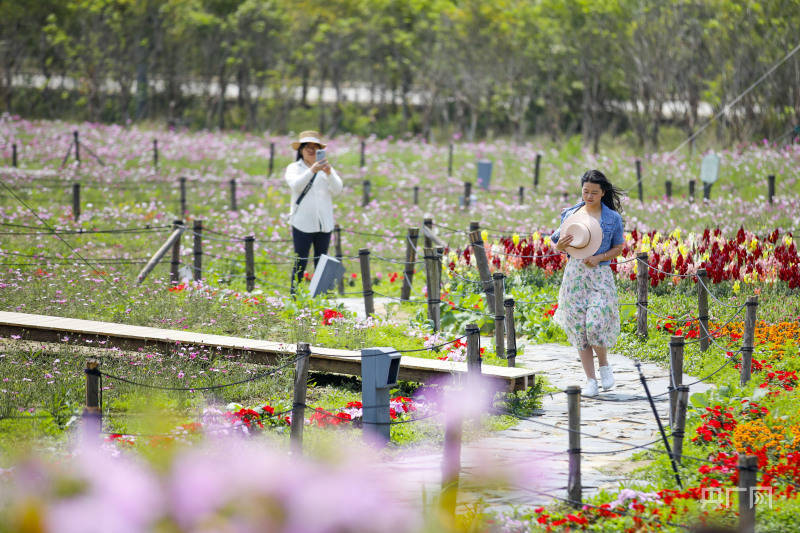 央广网福州4月9日消息(记者龚雯)4月8日,位于福建省福州市长乐区的闽江河口湿地国家公园,春光明媚、气候宜人。候鸟形状的花坪里鲜花纷纷盛开,吸引市民和游客前来观赏、休闲。