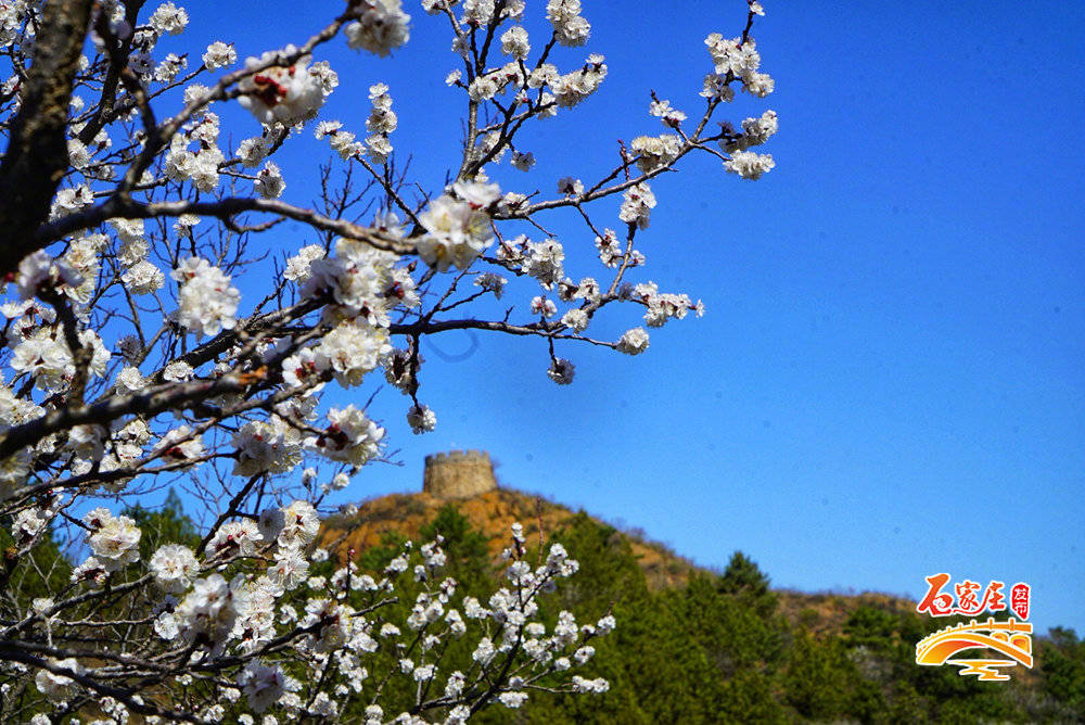 阳春四月,金山岭长城两侧漫山遍野的野生山杏花争相绽放,从蜿蜒的长城铺展开去,蔓延成一幅绝美画卷,把雄浑古朴的长城妆点得格外清丽。