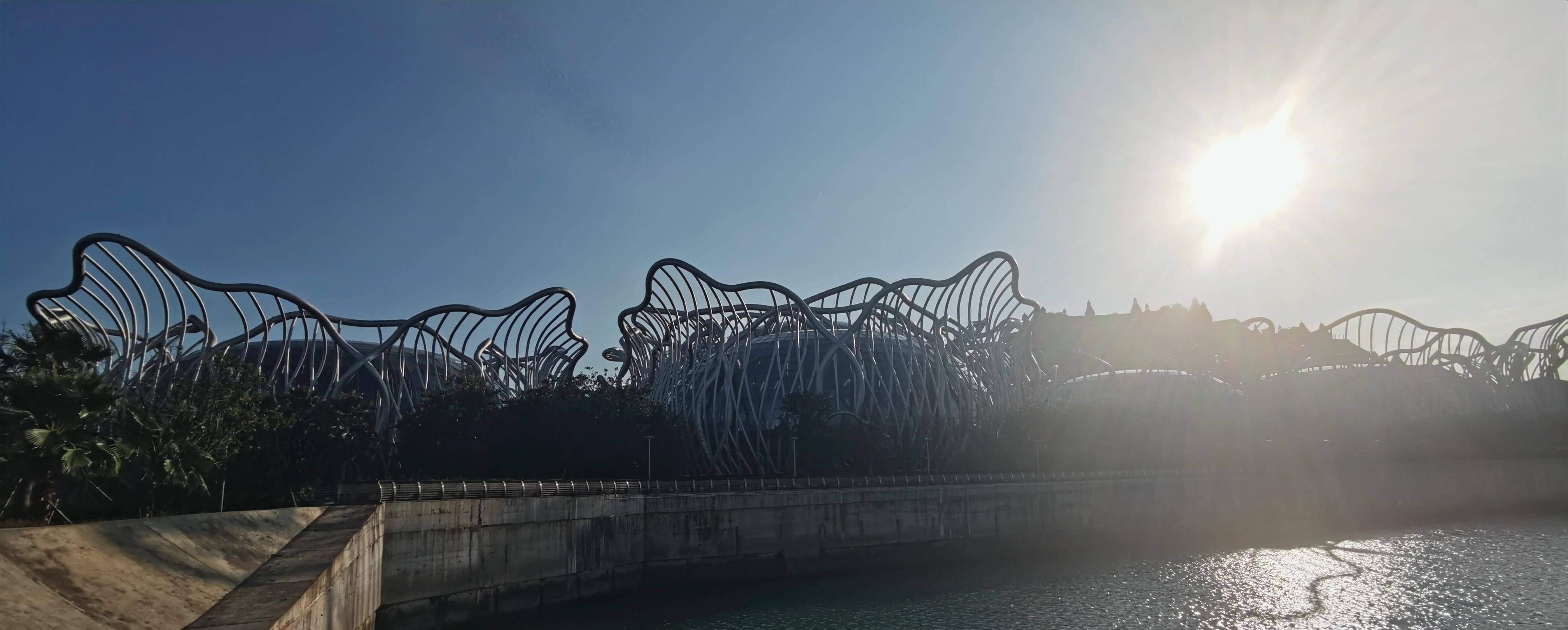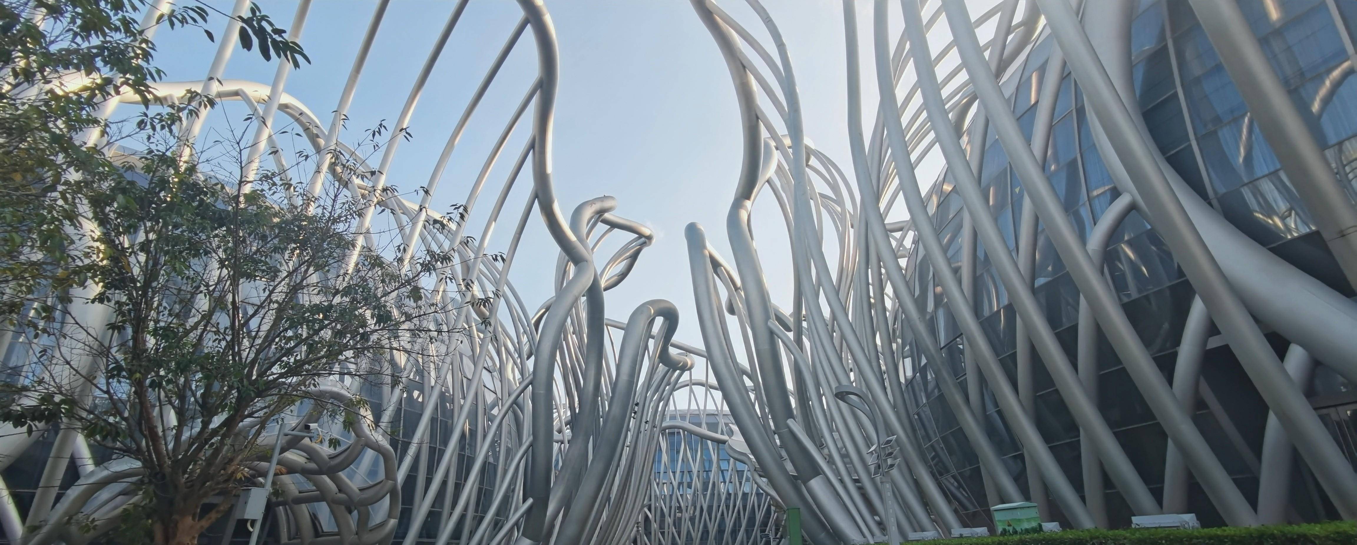 前方出现了很魔幻的建筑,像是一些在空中凌乱地飞舞着的钢管。