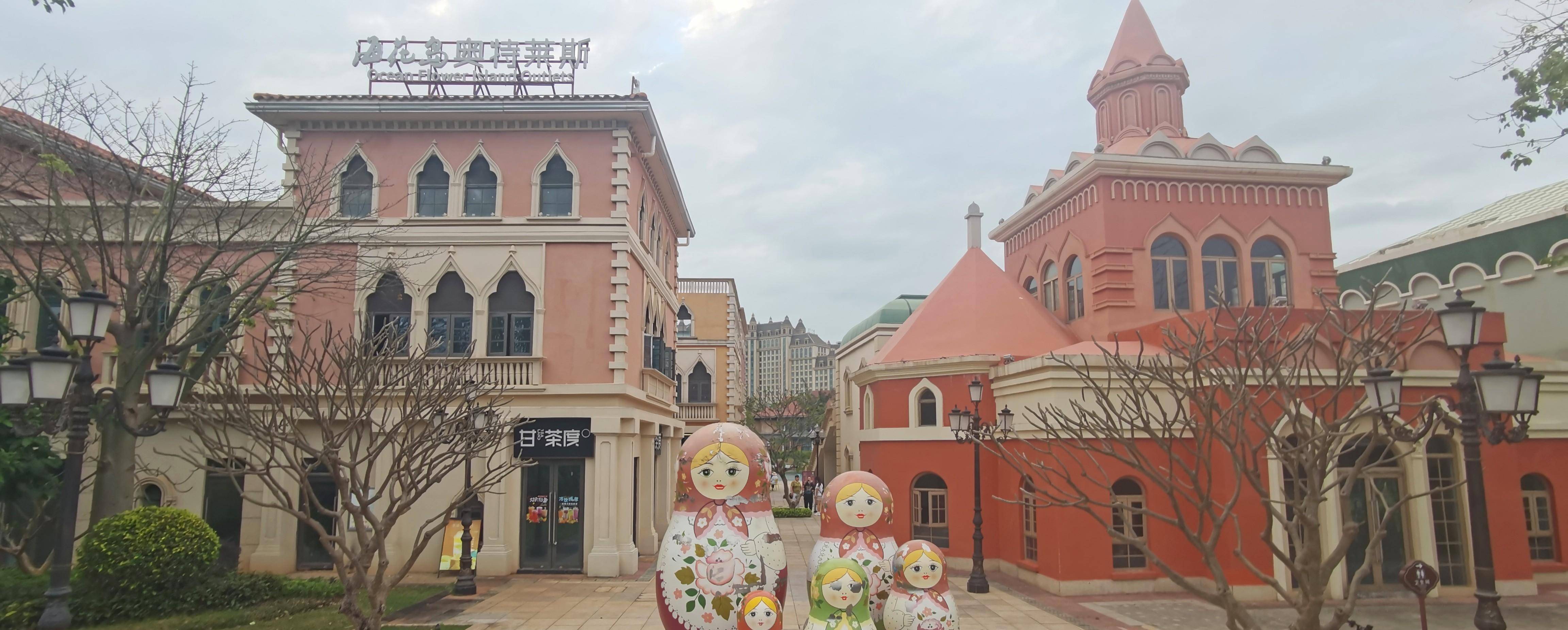 海花岛的奥特莱斯面积很大,这里也是万国建筑的展览馆。可惜现在时尚的商家极为有限,这里反而成了观光打卡景点。