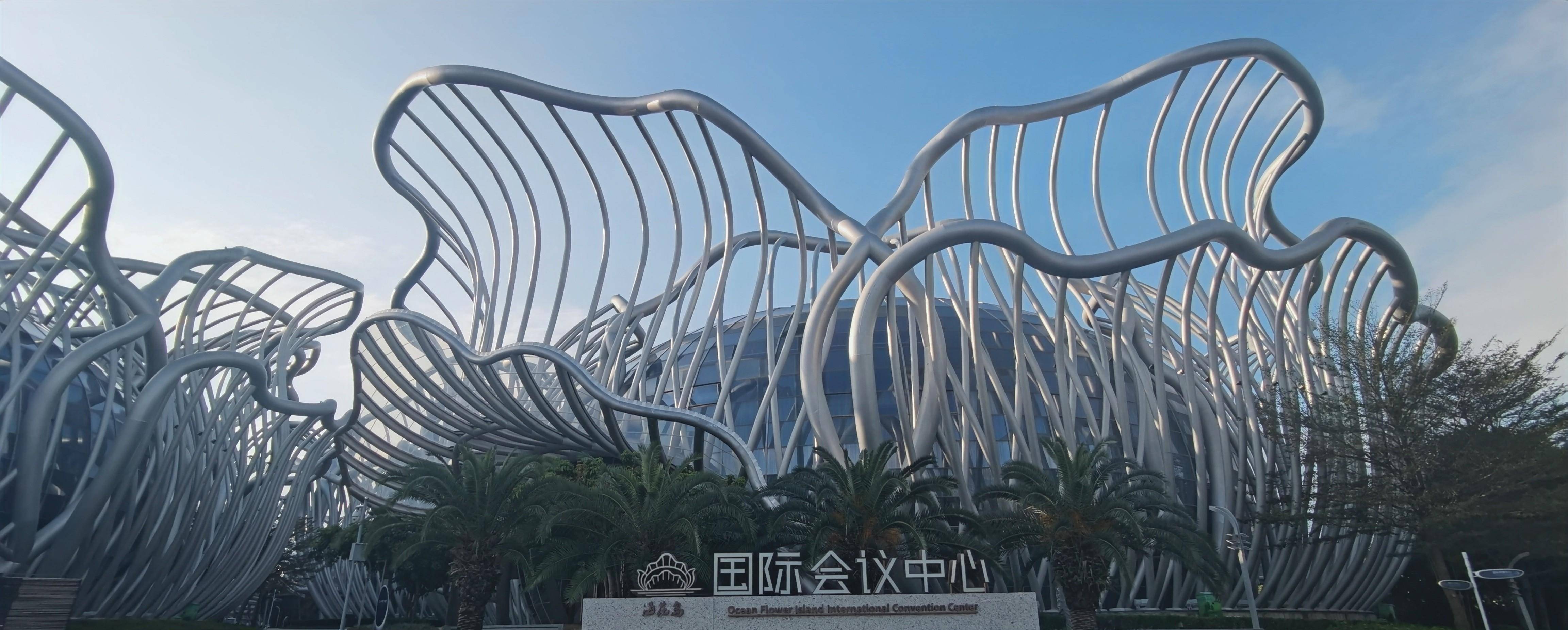 这里就是海花岛最有特色的场馆,海花岛国际会议中心。一朵花芯里面就是一座圆形的会议厅。