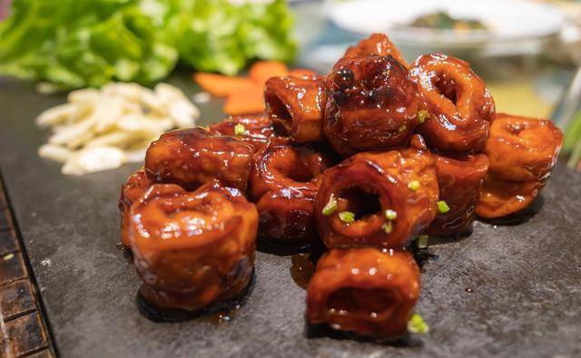 那么,当你终于迎来了第一口九转大肠时,你会发现这并不只是外表让你心动的原因。它那软嫩的口感,配上香味十足的调料,每一口都能带给你满满的幸福感。