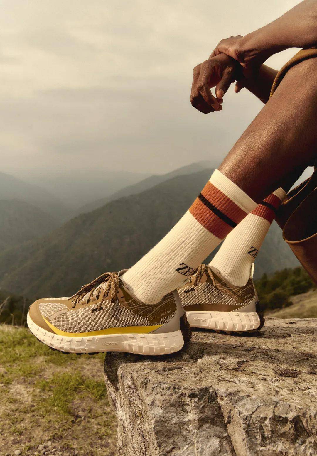 作为norda™的「王牌单品」,越野跑鞋当然是本季ZEGNA 户外系列中的重头戏:大底和中底由世界上最好的橡胶厂商Vibram®专门研发,不仅提供了相当优秀的抓地力与耐磨度,还可以帮助减轻30%的重量;鞋带与无缝鞋面均由DYNEEMA®材质制成,其质感轻如羽毛,但比同等质量的钢铁还要强韧15倍,并可在生产工程中减少二氧化碳排放,处处彰显环境友好的绿色理念。