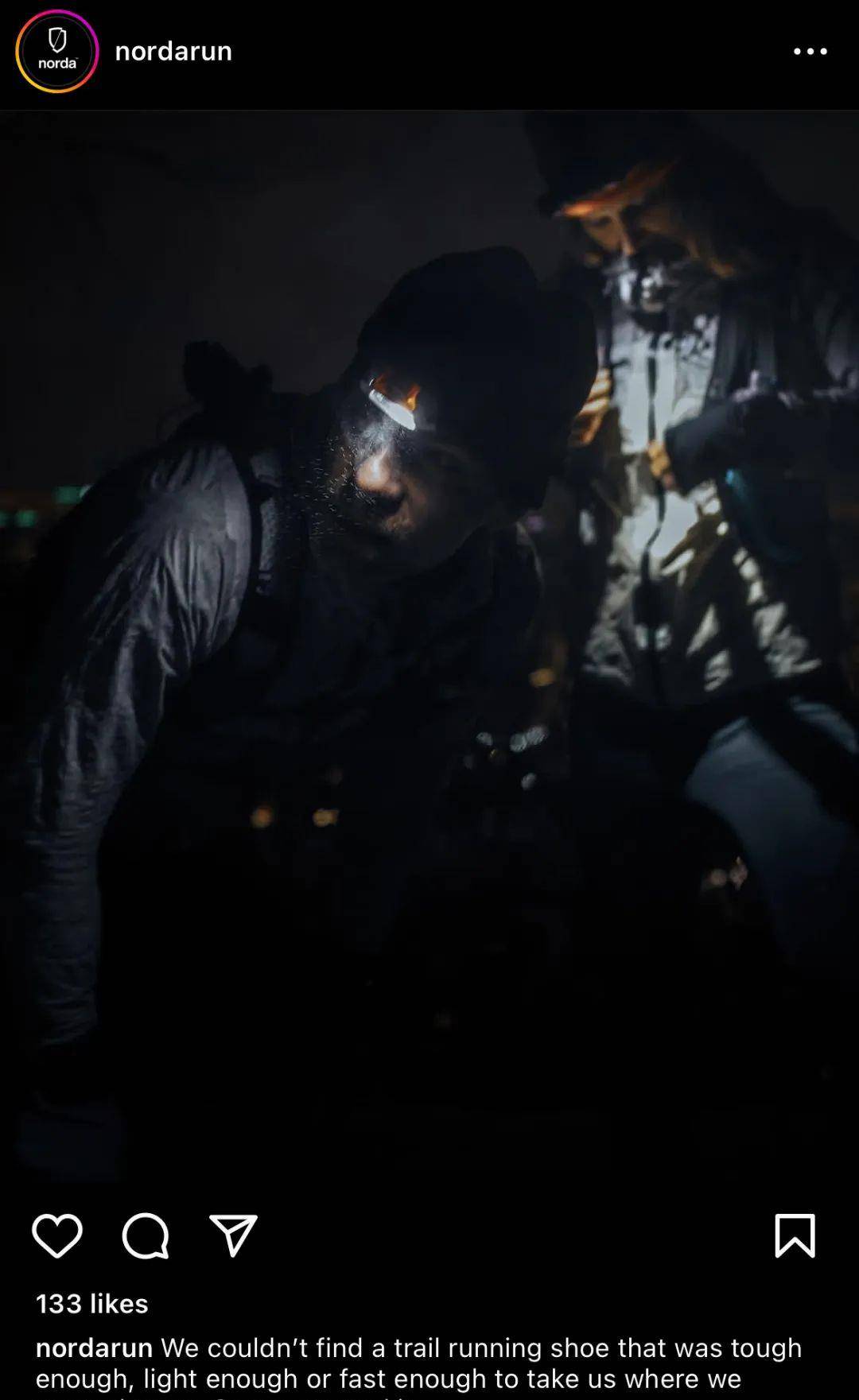 norda™在Instagram官方账号上的首条发布就高调宣言:「我们找不到一双足够坚韧、足够轻便又足够快的越野跑鞋,于是我们决定自己做」