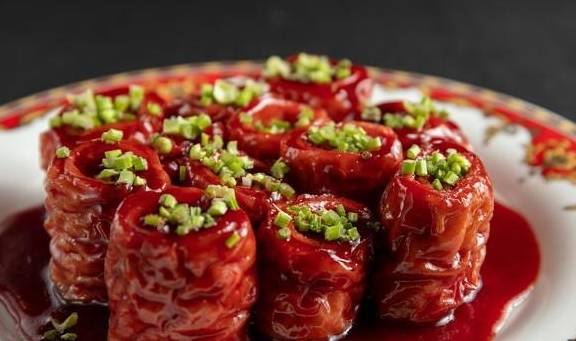 经典鲁菜之九转大肠,色泽红润透亮,辣香甜咸酸五味俱全