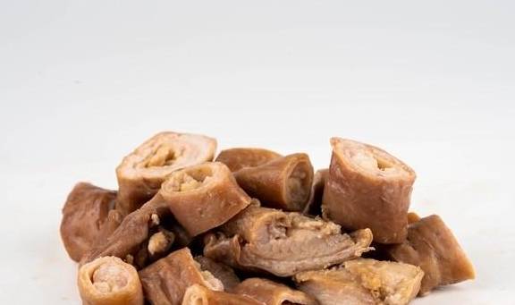 现在正式回答朋友的疑问,真正的九转大肠不用炸,而是用白煮大肠制作。