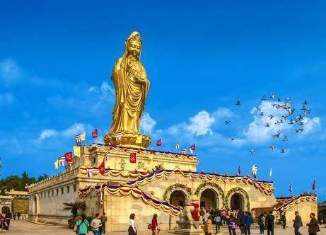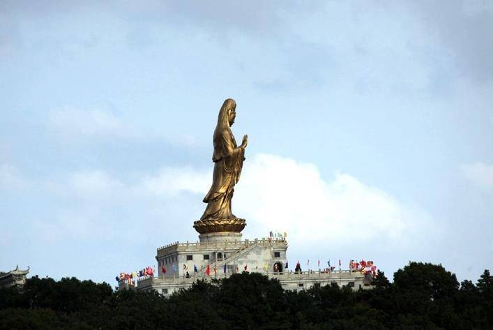 在普陀山上,不仅有大量历史遗迹,像莲洋午渡、短姑圣迹、法华灵洞等,其风情也是格外的秀丽,即便你不是佛教的信徒,在此也可以一饱秀丽景色。不过其中最引人注目的,可能就要数山顶上的那尊观音像了。