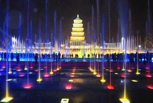 在西安古城文化所衬托之下,大雁塔喷泉广场更为熠熠生辉,因此国内著名的作曲家还为制作了众多曲目,更是以“花绽芙蓉”“水润古城”等众多优美词汇所组成。