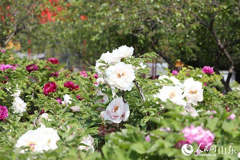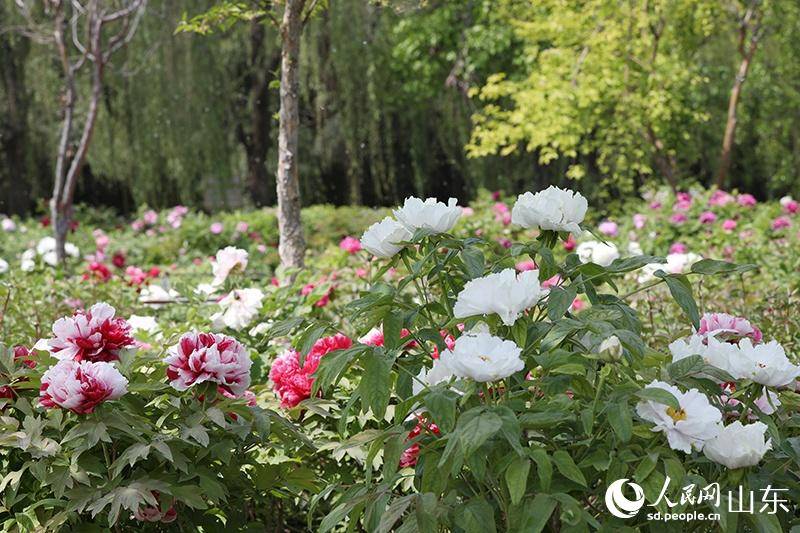在菏泽牡丹区曹州牡丹园,牡丹花迎来盛放,引游客观赏。人民网 刘祺摄