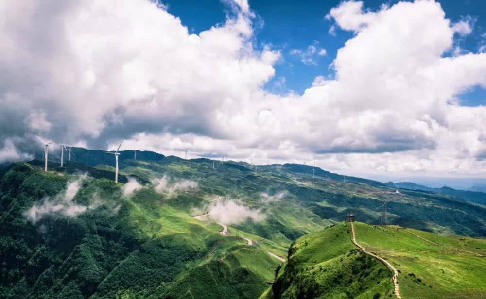 它就是乌蒙大草原,位于贵州省六盘水市盘县坪地彝族乡,这里有着原汁原味的少数民族风情。每逢一年一度的火把节的时候,当地的人们就会身着盛装,来到草原上,对山歌,跳民族舞,用这样的方式来庆祝他们的节日。乌蒙大草原,当地人称为是“坡上草原”。最高的海拔有2857米,最低的也有740米,这里有着优质的牧草,是牛羊马的天堂,同时这里还有丰富的水资源,风能资源。