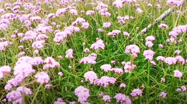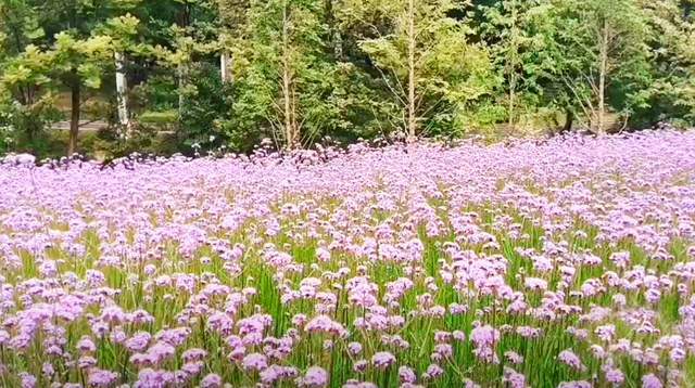 以慢跑者的视角观看马鞭草,还真的看到了花海的感觉。比如,镜头拉低,四周全是马鞭草的枝叶,慢慢抬升,从枝叶到花蕾,这个动作变化让人误以为是经历了从森林到草原的环境变换。而拍摄花海的风景,最重要的是角度,远视角的话,花海没有,只有一块草坪,近景仰拍,慢慢就有氛围感了。比如先要找到一片前景,将马鞭草全部覆盖,然后慢慢斜拉,看到紫色花海,占据屏幕一半以上区域,之后再用一个背景打底,花海一下子就出来了。