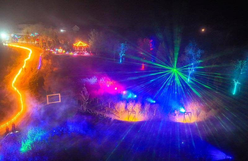 堆云洞今年首届樱花节主办方在樱花谷设置了“月亮网红桥、”构图“相框、”充气“月球、”“摇摆椅、”“网红长廊”等等,尤其是夜间的电音节设施,达到了七彩梦幻的光影效果,身临其境,令人如痴如醉,还有传统美食、儿童游乐等等。