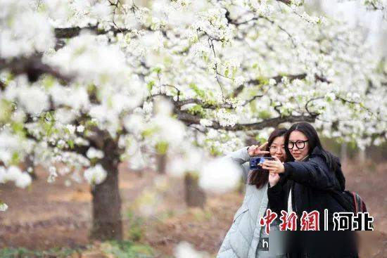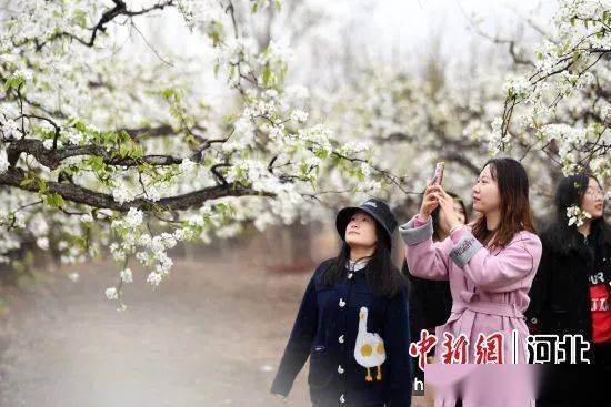 图为游客们在廊坊市广阳区万庄镇梨园踏春赏花。孙宝宇 摄