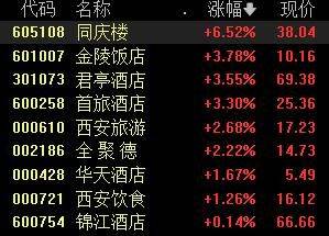 周五盘中,酒店及餐饮板块快速拉涨,截至午盘,同庆楼涨超6%,金陵饭店、君亭酒店、首旅酒店等涨超3%。