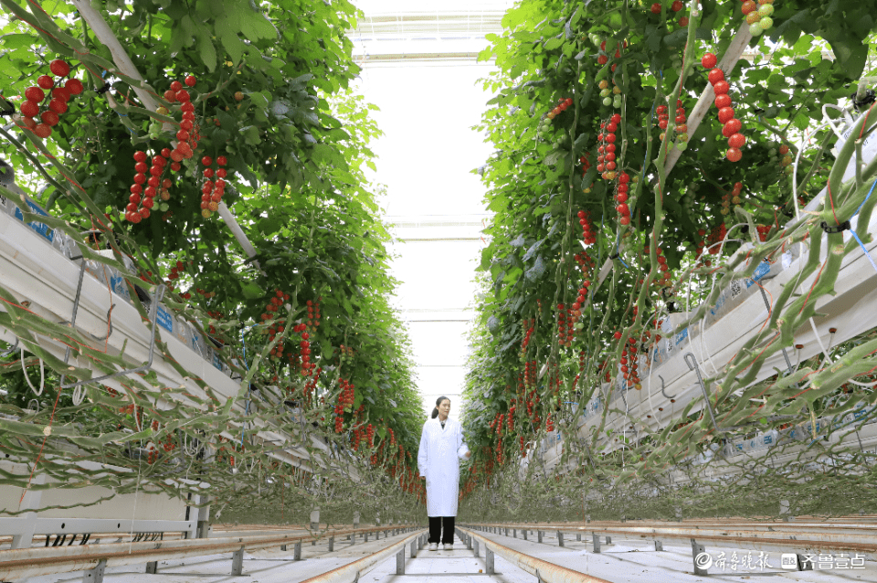 项目占地505亩,相当于47个足球场这么大,园区引进国际领先的荷兰智慧农业生产技术。在这里,新技术颠覆了传统农业的耕种方式,天气热了准时开窗通风,土壤干了滴灌系统自动浇水……种种先进技术的运用,时刻控制着对西红柿产生糖分影响最大的光照和肥料等因素,为西红柿的生长提供了最为合适的环境,恰当的光照、肥料、水以及二氧化碳浓度既提升了西红柿的口感,又提高了西红柿的产量。