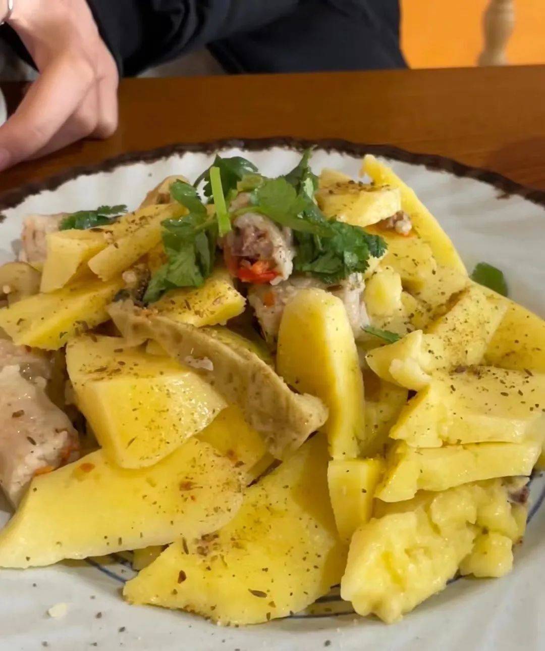 这道菜是采用红烧的方式处理羊肉,嫩而不膻且温暖心田,加之焖饼与汤汁完美融合,真的是每吃一口都是味蕾的享受。