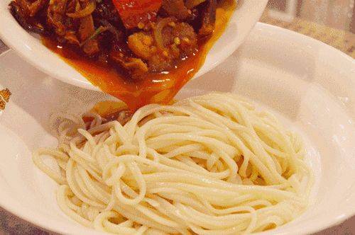 新疆的面条不是擀出来的,而是用手拉出来的,劲道又有韧劲。