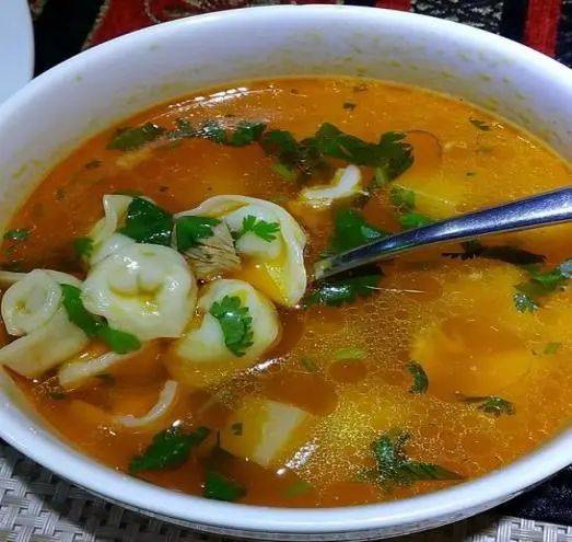 新疆味道曲曲儿,用羊肉做馅,汤也是羊肉汤,可放入西红柿、木耳、菠菜、香菜等食材;根据个人的口味,也可以搭配其它的菜。