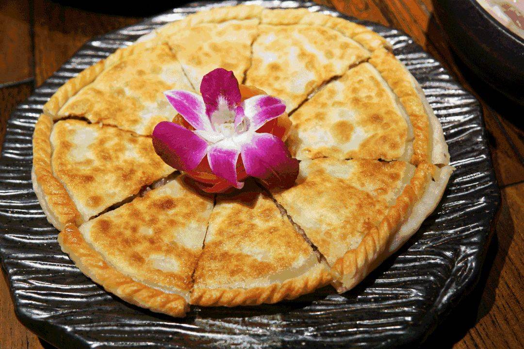 加入切碎的羊肉丁、盐、孜然粉、胡椒粉、洋葱末等佐料烤制而成。