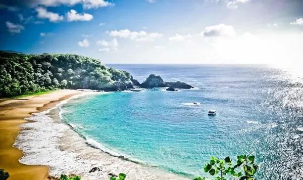 巴西费南多诺罗尼亚岛(Fernando de Noronha)的桑乔湾海滩在“全球25佳海滩排行榜”名列第一,澄澈的海水非常适合潜水,从峭壁顶端俯瞰海景,还能看见海豚在海面上跳跃,桑乔湾海滩也是世界上最大的海豚常驻家园。联合国教科文组织(UNESCO)将桑乔湾海滩列为世界遗产,为了保护这些自然岛屿,给海豚一个更美好的生存环境,桑乔湾海滩有限制游客人数。