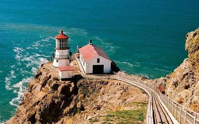 雷斯岬是一片向太平洋中心延伸十英里的三角形高地,距离旧金山仅1个半小时车程,这里有连绵起伏的山丘牧场和一望无际的海滩, 沿途山路曲折蜿蜒,绿草如茵的山坡上点缀着闲庭信步的奶牛,一派风园风光。海象、海豹、鹿、牛等野生和放牧的动物纷纷出没,让此处仿佛是一个在繁华城市边上的世外桃源。灯塔是雷斯岬的标志性景点,始建于1855年,之后在数次改建后成为使用电力照明的灯塔,目的是为经过此处的船只导航,避免船只触礁。前往灯塔需要向下走三百余级台阶(台阶步道仅在每周五到周一的10:00~16:30开放)。