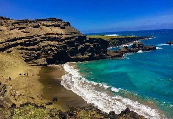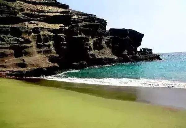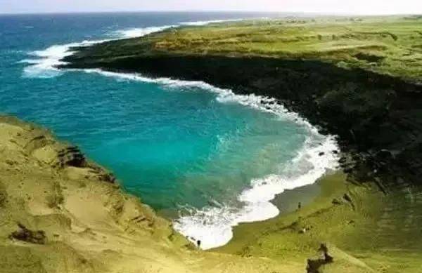 Papakolea沙滩位于美国夏威夷州夏威夷大岛的最南部,也是美国领土的最南部,是世界上仅有的两处绿沙滩之一。远远望去,由橄榄石形成的沙滩,好像一块细腻的碧玉陈列于海天之间,令每一个看到它的人感到颖惑。绿沙滩的主要成分是橄榄石,当地人传说这些橄榄石是火山女神的泪滴。据说,如果有人擅自捡绿沙回家,就会遭到女神的报复。这千古传说和人们对自然神明的敬畏,从根本上保护了这片珍贵的沙滩。不过游客想要在这里享受日光浴必须先获得许可,而且把沙滩上的沙子带走是违法的喔!