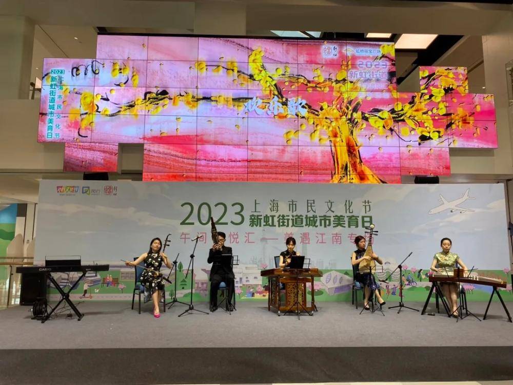中午时分,行走队伍来到虹桥丽宝广场,正好赶上“午间音悦汇”系列活动今年首场音乐会——美遇江南专场。音乐会带来了10多个节目,包括歌曲演唱会、丝竹演奏、舞蹈表演等,让大家享受了一场视听盛宴……