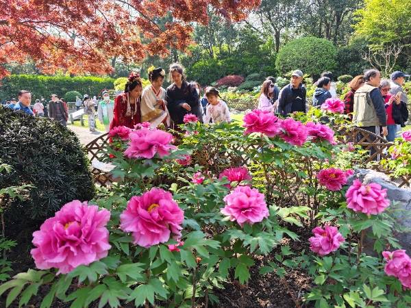 谷雨时分赏牡丹,百年中山公园内1500株牡丹暗香袭人,昆曲阵阵,国风灯笼下,汉服爱好者们化身“牡丹仙子”巡游花间,惊艳了时光。