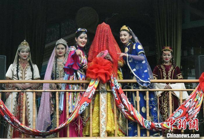 图为压轴表演的是游客最期待的“西域公主”选郎环节。 孙亭文 摄