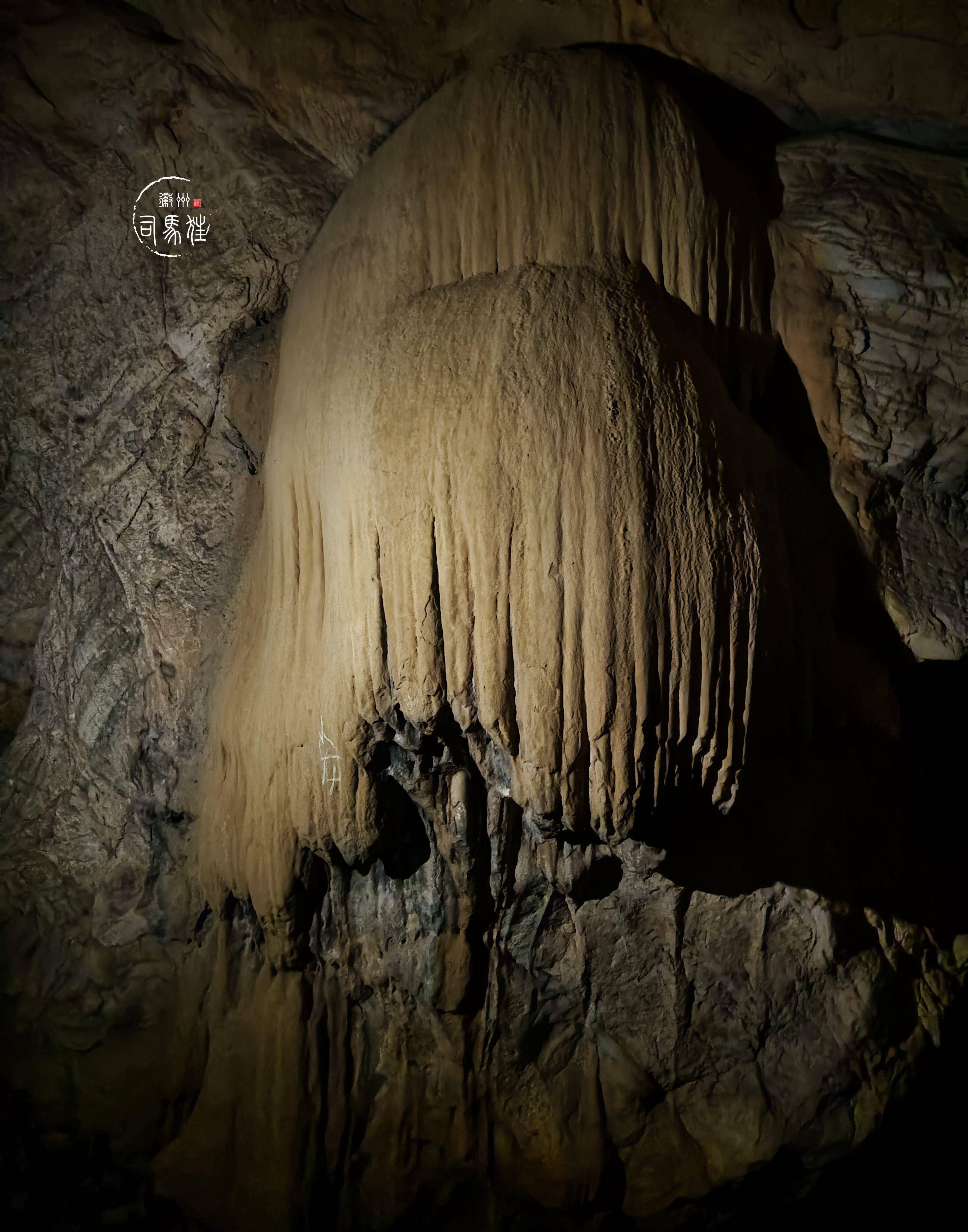 另有一石,神似收拢起来的华盖,不知道是否便是石凉伞?石呈黄褐之色,好像石壁上蓦然长出的瘤子一般,很是突兀。未到跟前,远远被一层石壁遮掩住,人行至此,方才惊觉有此怪石。愈往里去,洞口愈窄,人要弓着腰才能继续往前。我内心很好奇,继续往里走,究竟还有没有更多神奇的石头。更想找到那发源在石洞里的泉眼,鞠一捧泉水洗涤一下双眸,不知道会不会生出慧眼来。奈何,体重在这里摆着,很是担心往里去会被卡住,只能告诉自己,千万不要逞强。