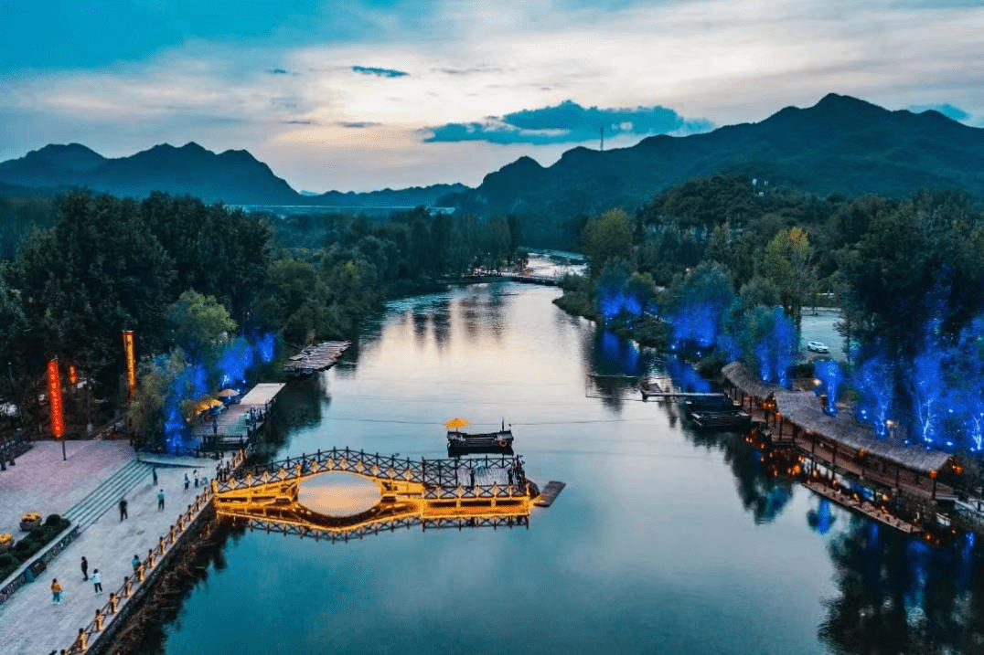 小桥流水、鸟语花香、戏曲悠扬,让人仿佛进入“江南水乡”。夜幕下的易水河畔,山水光影秀带来视觉盛宴,游客换上华服穿行在古色古香的街道,感受着千年来的太行乡村风韵。