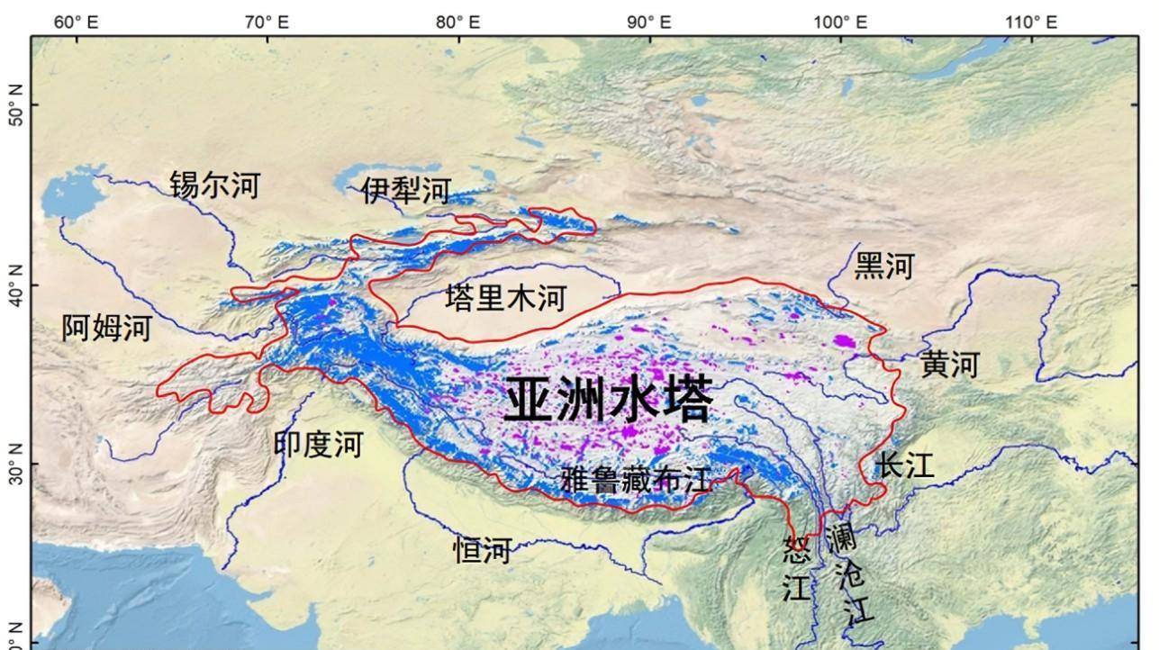 我们都知道家里的自来水,需要一定的压力和水源才能流出来,青藏高原不仅地势高,而且是除了南北极以外,冰川面积最大的地区,水源充足。因此,青藏高原就起到了高山水塔的功能,汇聚在青藏高原的冰川水,在高耸的地势作用下,流出青藏高原,奔向四面八方。