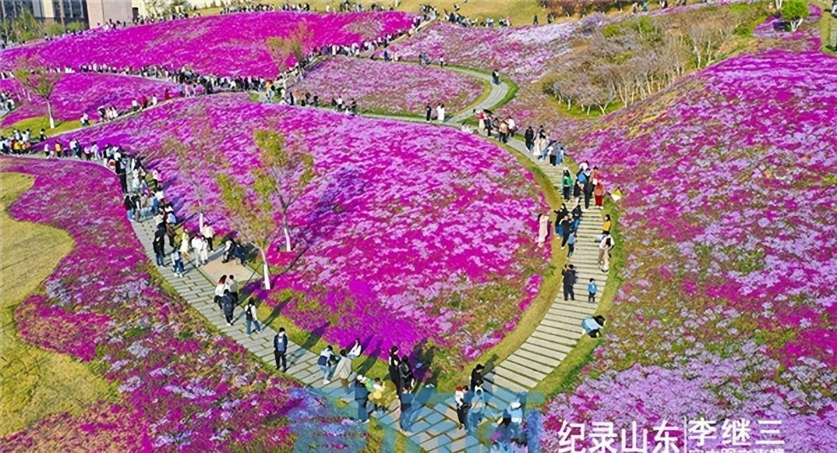 近日,位于济南龙鼎大道南首“福禄考”花海全面绽放,放眼望去,粉白色与玫紫色的花朵交叠在一起,满目皆是姹紫嫣红、繁花似锦,红的粉的小花为大地铺上了花毯,漫步于此,仿佛置身在粉色海洋。