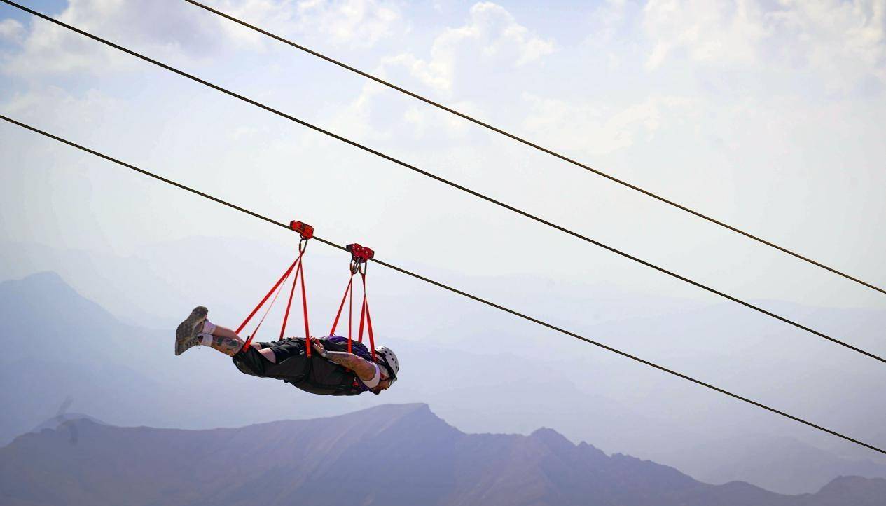游客在体验全球最长滑索。阿联酋勇士集团供图