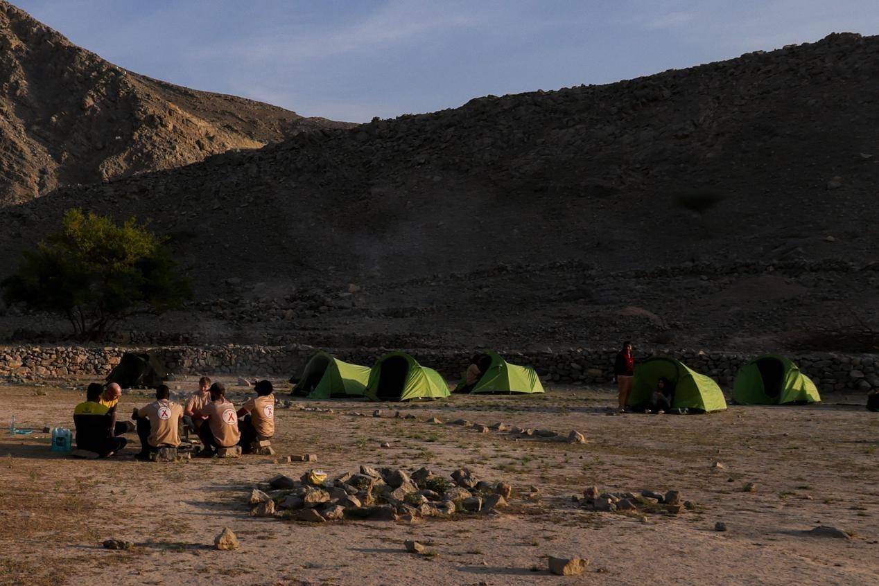 从市区出发行驶约30分钟,便来到贾伊斯山路入口,拐过几道弯,一片由集装箱改造的营地出现在山谷中。这里就是贝尔·格里尔斯野外探险训练营。自2021年开业以来,已有不少游客来此体验“荒野求生”。