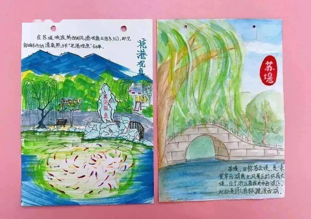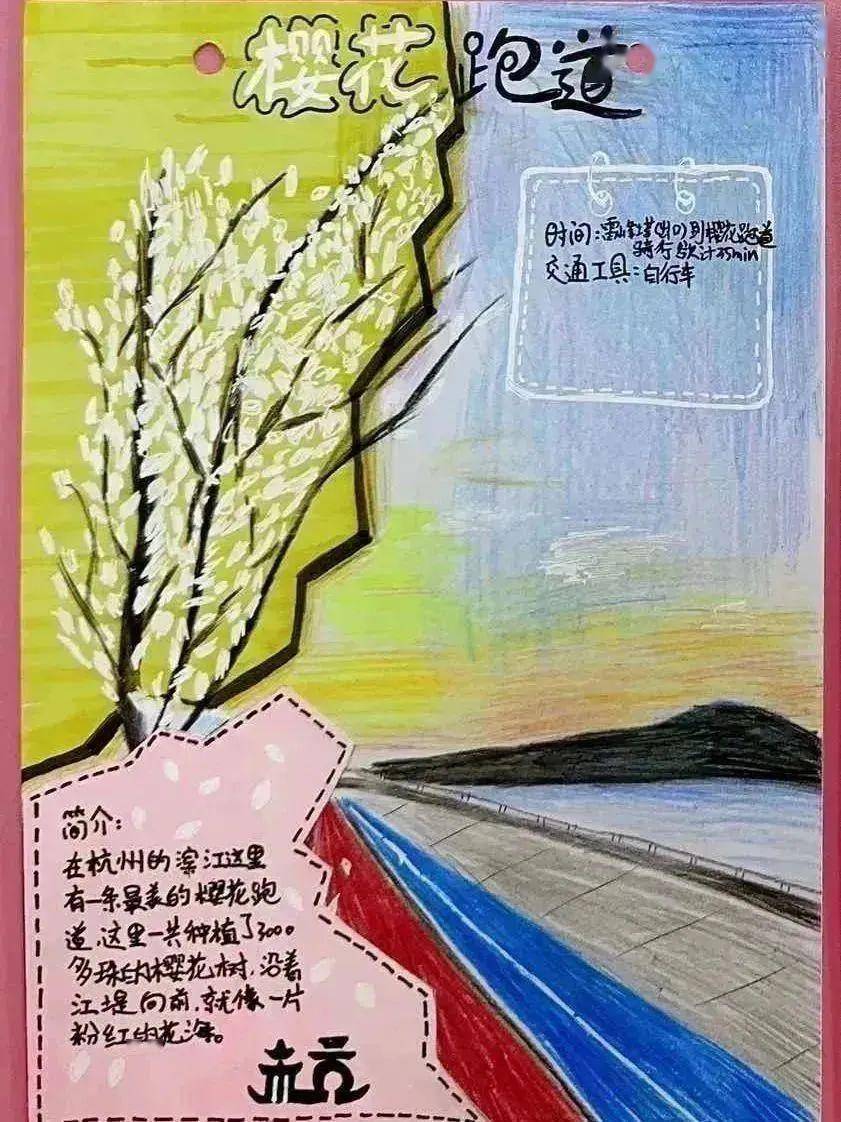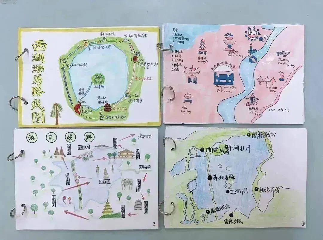 滨兴学校近日组织了一个有趣的活动——制作“杭州一日游小手册”。同学们需要制定包括西湖十景、河坊街、宋城、京杭大运河等著名景点在内的合理的游览路线,通过亲身体验特色文化活动和美食,绘制出一本本图文并茂的手绘“杭州一日游手册”。一起做小小东道主,迎亚运,向未来!
