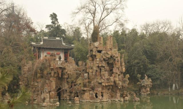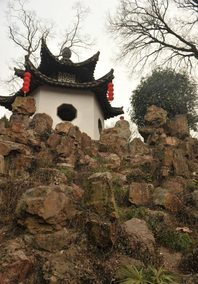 古泉边上,一座六角重檐的小亭,叫待月亭。亭子与黄石假山山洞相通,周边设八边形观景窗。