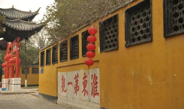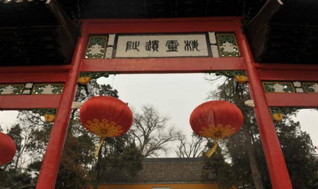 牌坊两边的院墙上分别嵌着两块石碑,一边是蒋衡山的“淮东第一观”,一边是王澍书“天下第五泉”大字。中门之上有篆书。是“栖灵遗址”四字,为清光绪年间盐运使姚煜手书,字体雄美。