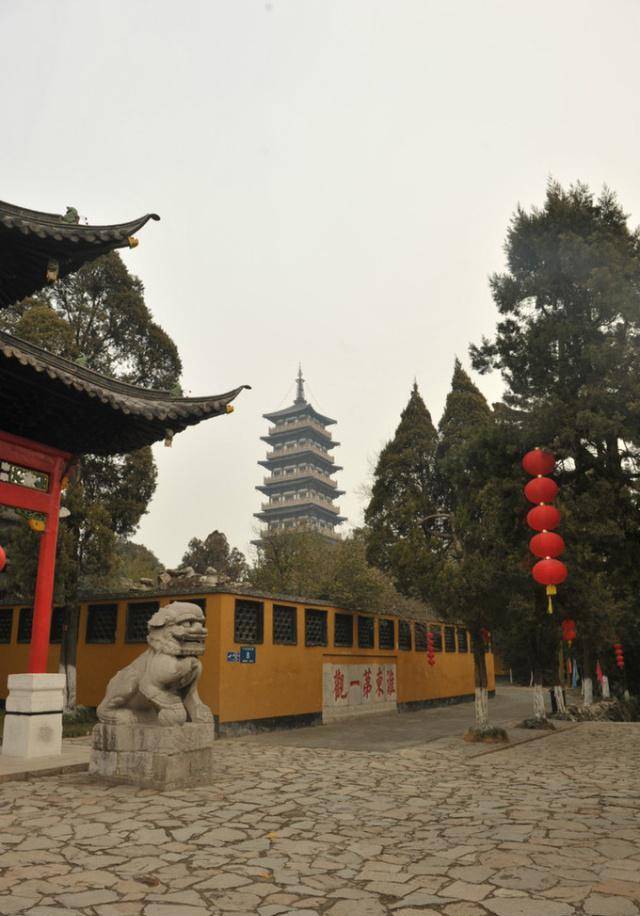 沿着数百节舒缓石阶登上大明寺前的广场,迎面是一座庄严典雅的牌楼。牌楼为纪念栖灵塔和栖灵寺而建,四柱三楹,下砌石础,仰如华盖。牌楼前面南而踞的一对石狮格外引人注目,石狮按皇家园林规格雕镌,造型雄健,正头,蹲身,直腰,前爪平伏,傲视远方。