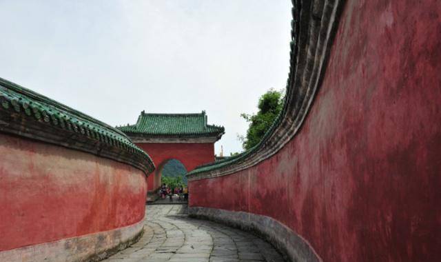 红墙夹道是坡度陡峭的石道。虽行缓慢,也喘着粗气。太子坡的红墙有的已经残破了,墙外面还有柱子顶着,墙面上的红漆也已经斑驳了,墙上的青苔显露着风雨岁月的侵袭。地下铺的是一块块的方石板,有些被踩的已经不再平整。