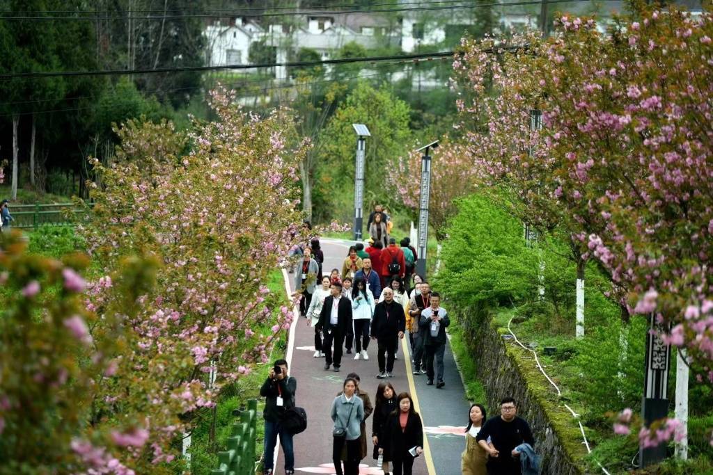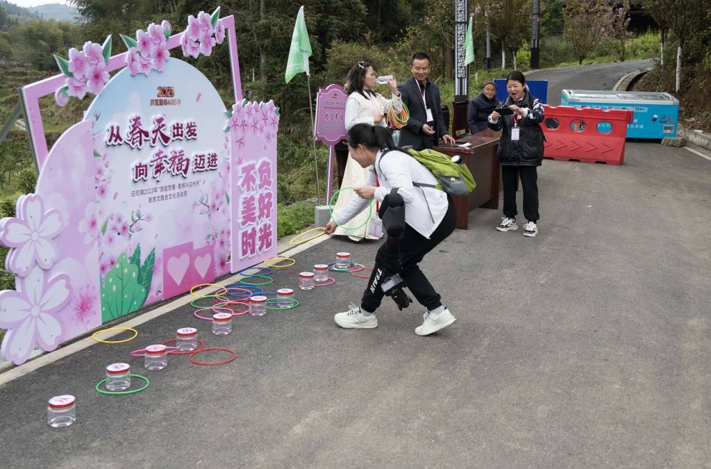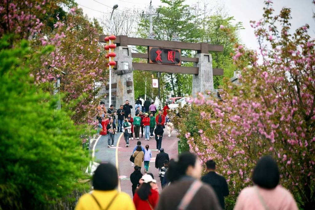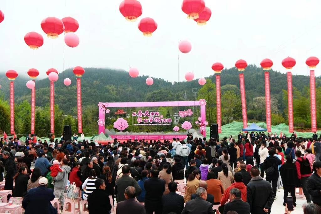 来凤县融媒体中心记者 邓浩 汤煜东 邓红慧(实习)“杨柳绿池边,樱红老峡河”,为庆祝建州40周年,4月7日,来凤县旧司镇2023“游园赏樱·看振兴迎州庆”商旅文融合文化活动周的开幕,唤醒了这个春天游园赏樱纯美的浪漫。活动以“从春天出发 向幸福迈进”为主题,汇集文化体育、摄影赏鉴、非遗及民俗文化展演、特色集市、商务活动等多个活动内容,展现了乡村经济复苏,文旅先行,趁势而上的强劲势头。