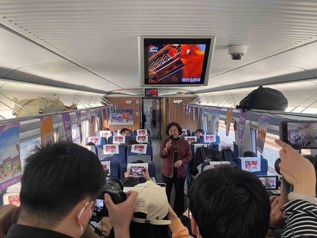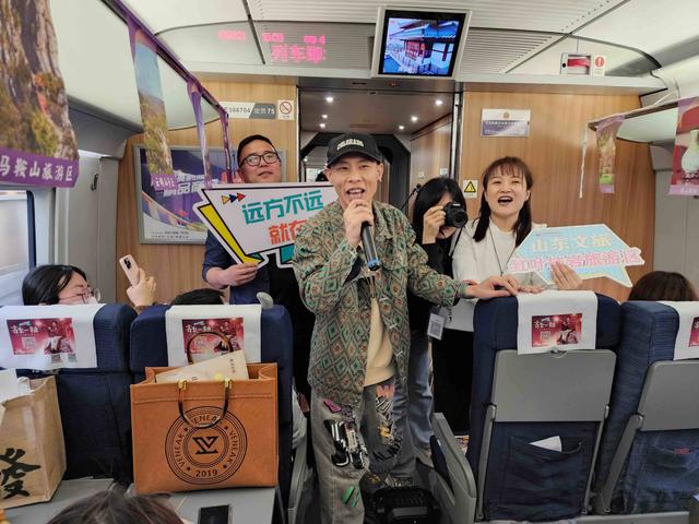 当日,这趟开往淄博的“烧烤专列·文旅车厢”还有一个更为特殊之处,那就是淄博市文化和旅游局党组书记、局长宋爱香带领淄博10个区县、功能区的文旅局长,以及红叶柿岩、马踏湖、周村古商城等淄博33家热门景区“代言人”,与乘客一同登上G9321次列车。变身“淄博文旅推荐官”的他们集体出战,分别在7节车厢走近乘客身边展开互动,广泛推介淄博文化和旅游资源,听取最一线的民声民意。