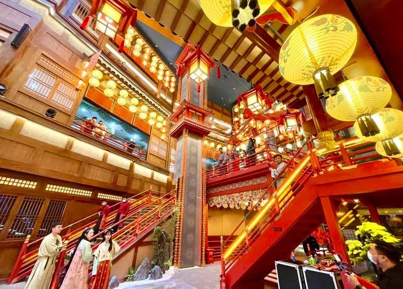 “长安十二时辰”主题街区用一场沉浸式“唐潮”之旅实力出圈,火爆全国。穿行在街巷中,太上玄元灯、花萼相辉楼等1∶1还原的影视化场景,让市民游客真切感受唐代长安气息的同时,纷纷自诩“大唐人”。自2022年5月开放运营后,“长安十二时辰”主题街区每天吸引万名游客前来观光。