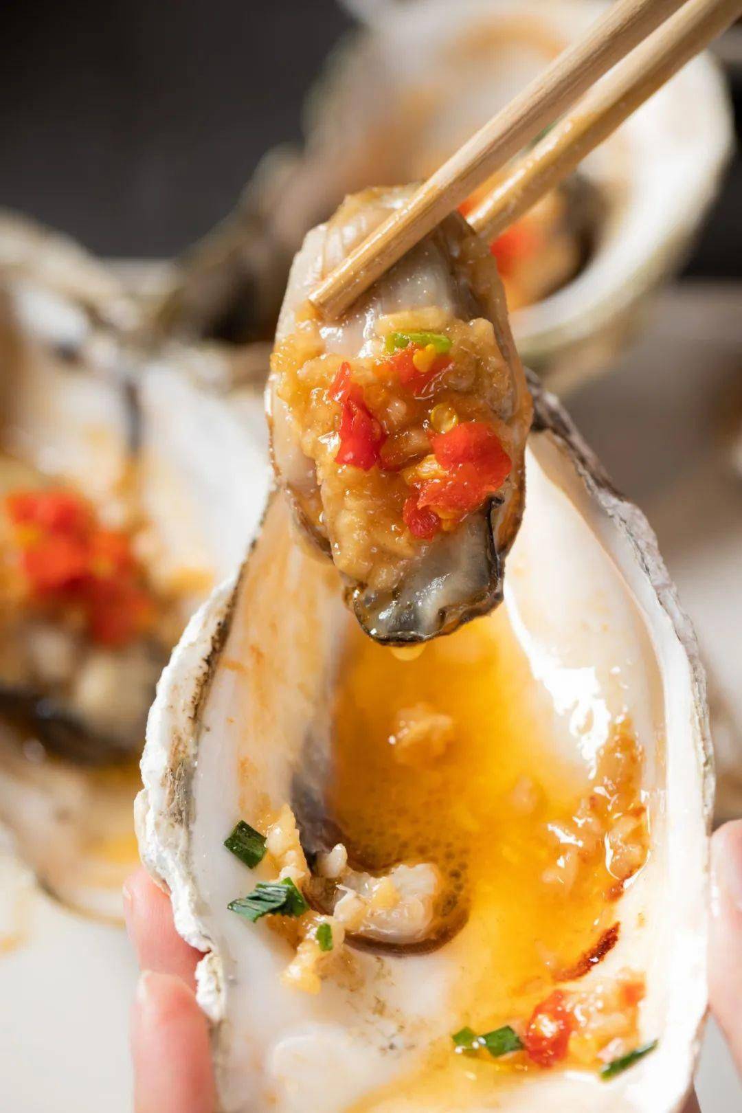 粤西人以烤生蚝为尊,手掌大的湛江生蚝,洗净后闭壳开烤,上碳炉后外烤内煮,汁水收浓,不需要任何调味,自然味道丰沛。上桌之前把蚝壳撬开,加入金银蒜和小米椒末点缀,再搭一瓶啤酒,这是身居南海之滨的莫大乐趣。