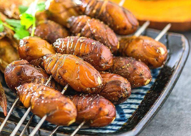 除此之外,还有各式各样的烧烤蛇、虫。在黔、桂地区,烤木虫、烤蜂蛹、烤蝎子,乃至烤甴曱(蟑螂),都不是罕见物事。